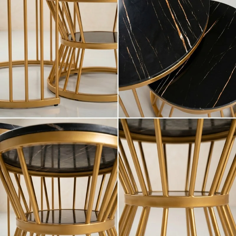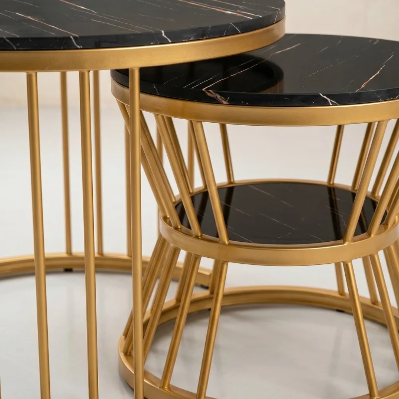 Nesting table- center table double , black marble shade top , Material : MDF